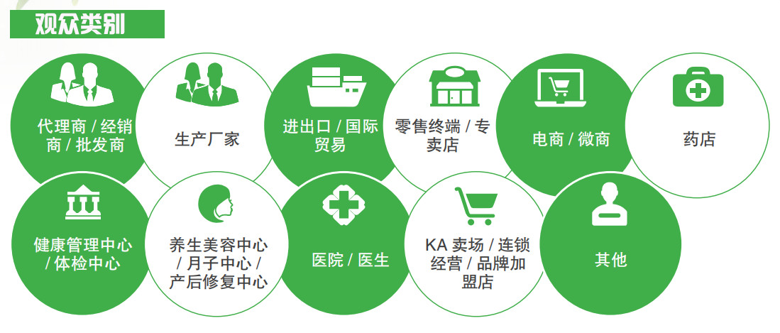 展會致力構(gòu)筑以婦幼健康、健康管理及康復(fù)醫(yī)療、醫(yī)療器械及小型家庭醫(yī)療設(shè)備、生物科技及智慧醫(yī)療、健康防護、包裝機械及制藥機械、營養(yǎng)品及健康食品、高端水、健康糧油 、中醫(yī)藥及滋補品、燕窩等大健康細分行業(yè)為特色的商貿(mào)平臺,共同為業(yè)內(nèi)人士打造行業(yè)權(quán)威的國際交流盛宴!