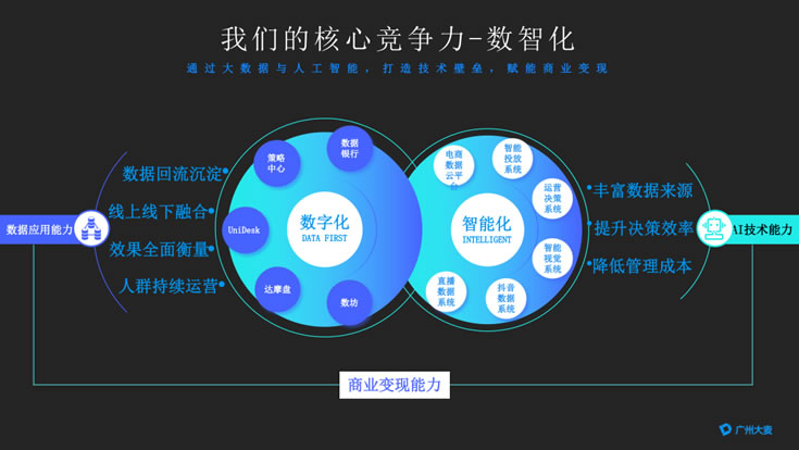 作為智慧商業(yè)解決方案領(lǐng)導(dǎo)者,廣州大麥以數(shù)據(jù)、創(chuàng)新為核心,以技術(shù)為驅(qū)動(dòng),為零售提供電商解決方案和實(shí)施服務(wù),包括咨詢服務(wù),數(shù)字營銷、消費(fèi)者運(yùn)營、推廣營銷和電商運(yùn)營解決方案。我們擁有服務(wù)大快消、大服飾、食品機(jī)械等行業(yè)的豐富經(jīng)驗(yàn)。行業(yè)專家根據(jù)客戶情況組建項(xiàng)目團(tuán)隊(duì),針對(duì)電商業(yè)態(tài)面臨的挑戰(zhàn),將深厚的行業(yè)知識(shí)與嶄新的營銷視角相結(jié)合,為客戶提供突破性的增長洞見,與在數(shù)字化經(jīng)濟(jì)環(huán)境下共建同進(jìn),實(shí)現(xiàn)“品效合一”的協(xié)同增長。廣州大麥不僅是天貓TEP生態(tài)合作伙伴,還榮獲阿里數(shù)據(jù)銀行、策略中心、UniDesk三重認(rèn)證。并憑借先進(jìn)的技術(shù)與優(yōu)質(zhì)的服務(wù)連續(xù)多年獲得行業(yè)內(nèi)各項(xiàng)大獎(jiǎng),包括阿里數(shù)據(jù)科學(xué)家強(qiáng)算法獎(jiǎng)、數(shù)據(jù)銀行黑馬先鋒獎(jiǎng)、電商“奧斯卡”金麥獎(jiǎng)良好創(chuàng)新營銷獎(jiǎng)、金蜜蜂良好整合營銷獎(jiǎng)、阿里媽媽創(chuàng)新貢獻(xiàn)獎(jiǎng)等。