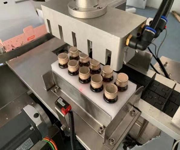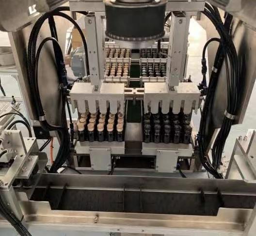 整線采用:泡沫托加料器、口服液加料器、送料輸送帶,四軸機(jī)械手加料機(jī)構(gòu)、入托裝盒于一體,結(jié)構(gòu)緊湊,操作簡單。