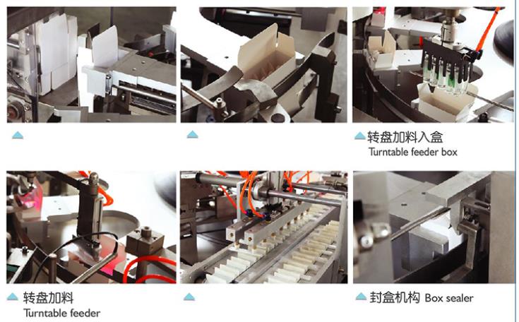 能實(shí)現(xiàn):在線口服液輸送及四軸機(jī)械手加料、自動(dòng)完成真空開盒、自動(dòng)插大小舌及封盒,在線攝像檢測(cè)等一系列外包裝全自動(dòng)操作功能