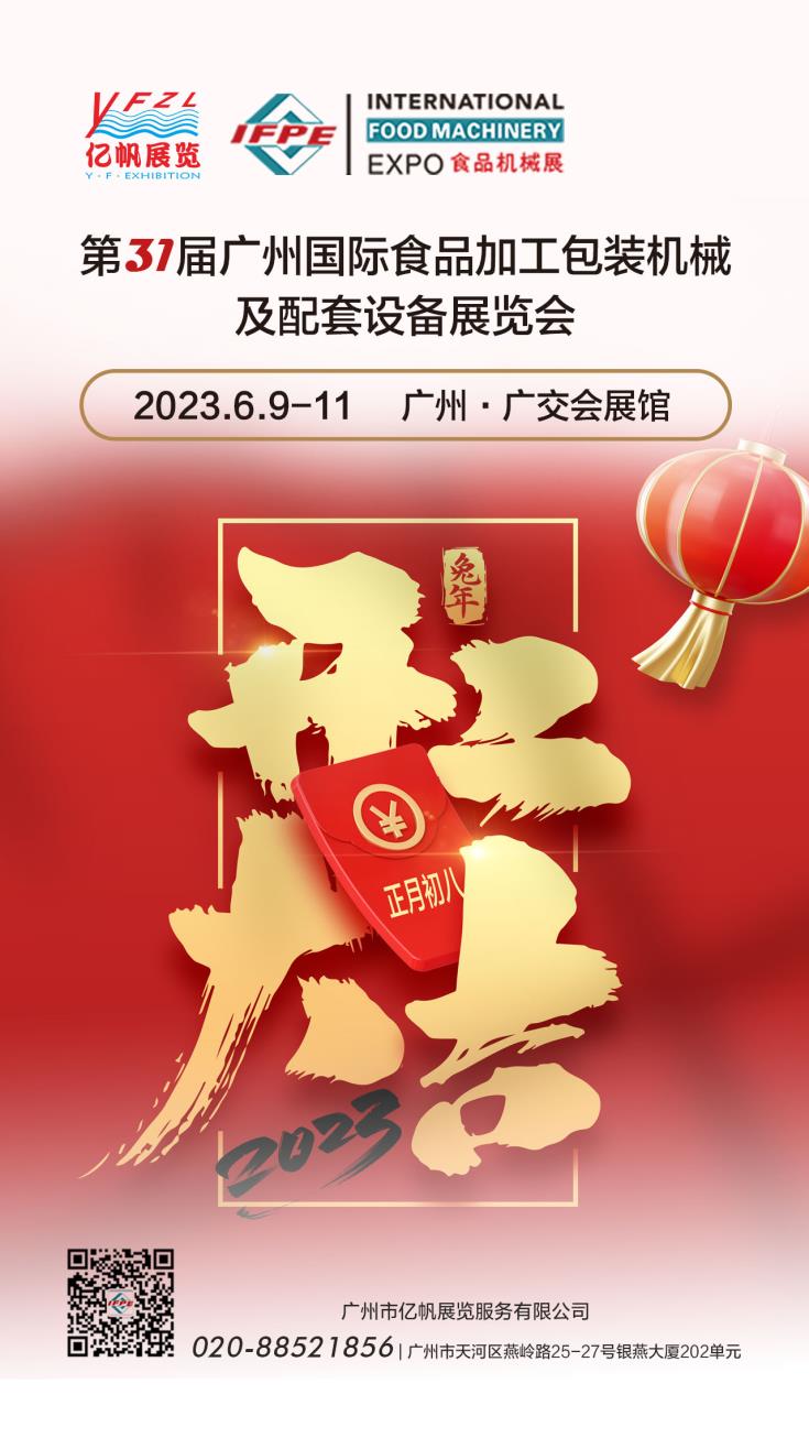 2023年6月9-11日,第31屆廣州國際食品加工包裝機械及配套設備展覽會將盛大回歸,地點仍然是廣州·廣交會展館。全球商機,一展觸達。