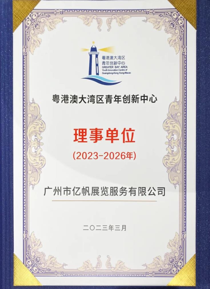 廣州市億帆展覽服務(wù)有限公司是粵港澳大灣區(qū)青年創(chuàng)新中心的理事單位