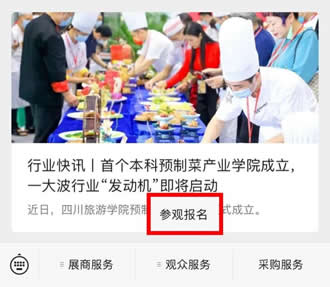 關(guān)注并進(jìn)入“IFPE食機(jī)展”微信公眾平臺(tái),點(diǎn)擊底部菜單“觀眾服務(wù)”-“參觀報(bào)名”即可進(jìn)入預(yù)登記界面。