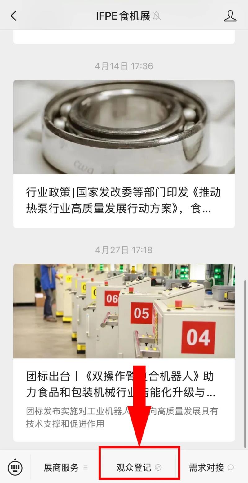 01掃碼關注公眾號STEP1:掃碼關注展會公眾號“IFPE食機展”。 |