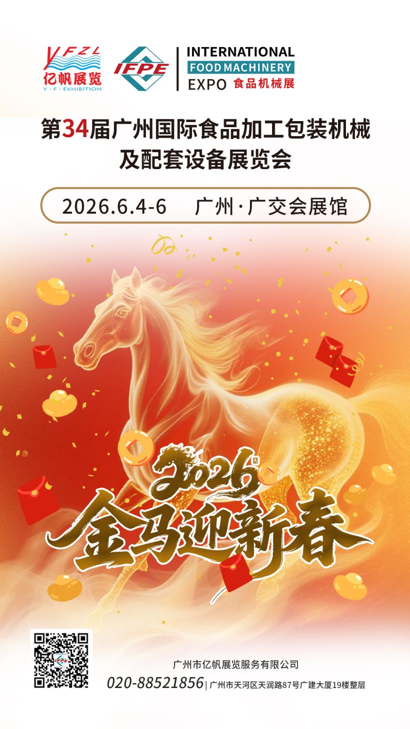 第34屆廣州國際食品加工包裝機(jī)械及配套設(shè)備展覽會(IFPE)將于2026年6月4-6日在廣州?廣交會展館舉行,IFPE食機(jī)展會由廣州市億帆展覽服務(wù)有限公司主辦,經(jīng)過多年的積淀與發(fā)展,已成為一個(gè)集食品生產(chǎn)、加工、包裝、食品招商全產(chǎn)業(yè)鏈于一體的行業(yè)品牌盛會。IFPE食機(jī)展與廣州國際大健康產(chǎn)業(yè)博覽會(IHE China大健康展)同期舉辦,將聯(lián)手為業(yè)內(nèi)人士搭建一個(gè)技術(shù)交流、促進(jìn)合作、擴(kuò)大上下游貿(mào)易、提高品牌和企業(yè)知名度的高品質(zhì)商貿(mào)平臺。