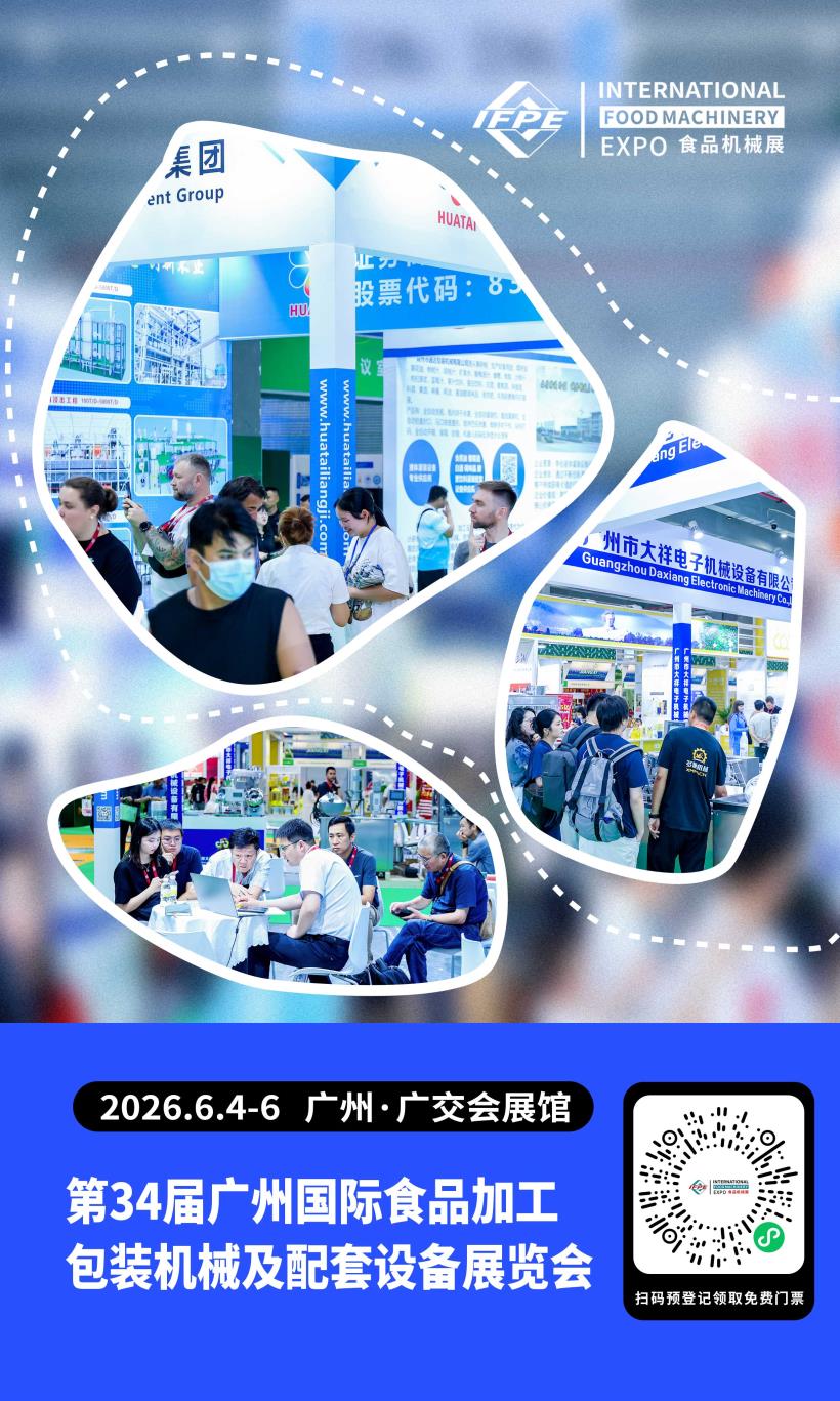 第34屆廣州國(guó)際食品加工包裝機(jī)械及配套設(shè)備展覽會(huì)(IFPE)2026年6月4-6日廣州廣交會(huì)展館我們等著您!