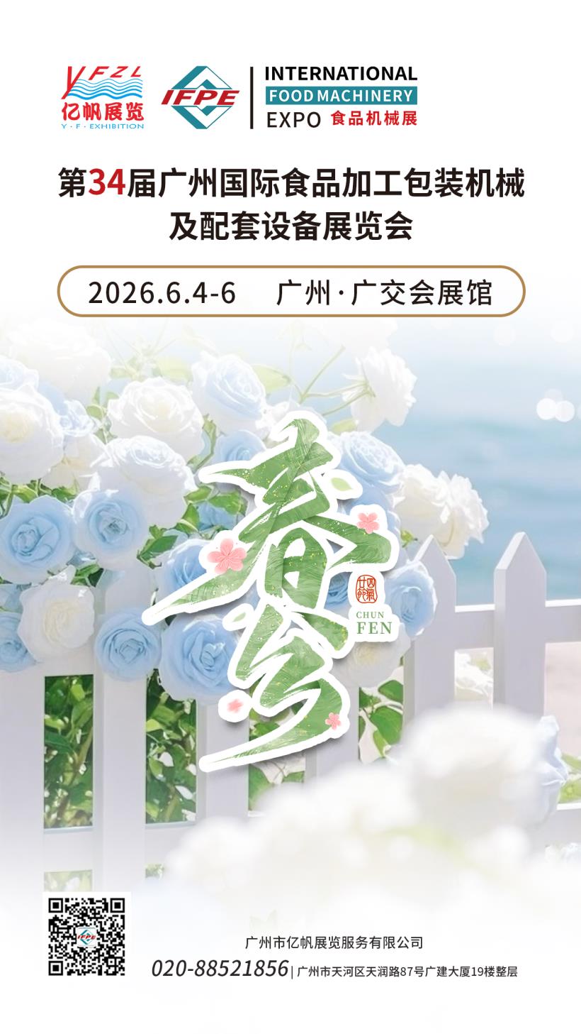 第34屆廣州國際食品加工包裝機(jī)械及配套設(shè)備展覽會(IFPE)將于2026年6月4-6日在廣州廣交會展館舉行,誠摯邀請您來參展/參觀!