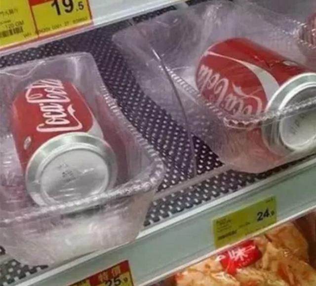 然而這些還不是最夸張的,看到可樂(lè)才是真正的夸張,可樂(lè)本身就有包裝,而且還是鋁罐的,不怕摔,不怕壓,那么將可樂(lè)裝進(jìn)保鮮盒,蓋上保鮮膜又是什么操作,本就密封很好的飲品,覆蓋上保鮮膜難道不是畫蛇添足嗎?保鮮盒不要錢還是保鮮膜不要錢,最終這一切都是由消費(fèi)者買單