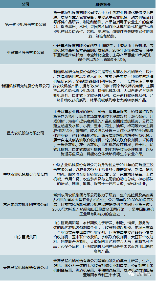 中國農(nóng)機(jī)行業(yè)相關(guān)公司