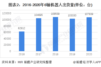 作為工業(yè)機(jī)器人主要產(chǎn)品的多關(guān)節(jié)機(jī)器人中,6軸機(jī)器人是其中的主要產(chǎn)品,2016-2020年6軸機(jī)器人的出貨量整體呈增長趨勢(shì),近年來變化較為穩(wěn)定,在2020年時(shí)出貨量達(dá)到107839臺(tái)。