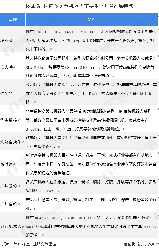 雖然目前國內(nèi)垂直多關(guān)節(jié)機(jī)器人主要被外資廠商占領(lǐng),但是國產(chǎn)企業(yè)正在加快國產(chǎn)替代進(jìn)程,諸如埃斯頓、埃夫特、 伯朗特等著名機(jī)器人廠商在垂直多關(guān)節(jié)機(jī)器人方面也有所發(fā)展,具體情況如下: