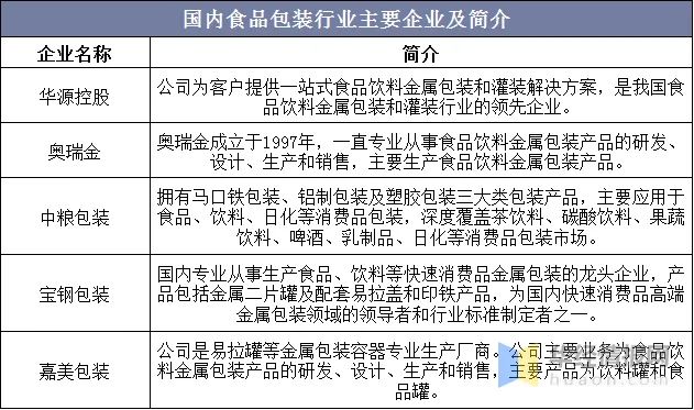 國(guó)內(nèi)食品包裝行業(yè)主要企業(yè)及簡(jiǎn)介