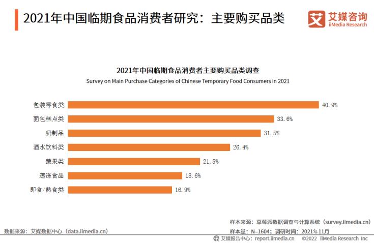 數(shù)據(jù)顯示,在消費(fèi)者購(gòu)買的臨期食品中,包裝零食類購(gòu)買的最多(40.9%),其次是面包糕點(diǎn)類(33.6%)和奶制品(31.5%)。艾媒咨詢分析師認(rèn)為,臨期食品品類多元,涵蓋日常休閑零食、剛需食品等,市場(chǎng)前景較為廣闊。