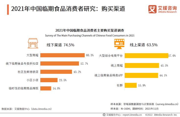 數(shù)據(jù)顯示,中國(guó)臨期食品消費(fèi)者的線下購(gòu)買渠道主要是來自于大型商超(60.3%)、臨期食品專賣折扣店(52.7%)等;線上購(gòu)買渠道主要是大型綜合電商平臺(tái)(57.6%)等。艾媒咨詢分析師認(rèn)為,臨期食品售賣渠道逐漸齊全,顧客購(gòu)買方便快捷,行業(yè)在未來將有較好的發(fā)展前景。