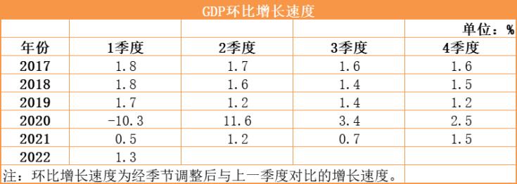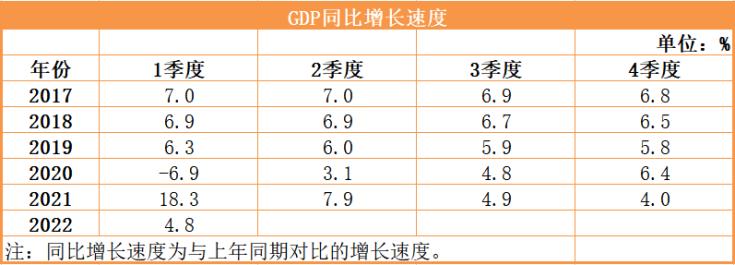 國(guó)家統(tǒng)計(jì)局最新發(fā)布,2022年一季度中國(guó)國(guó)內(nèi)生產(chǎn)總值270178億元,按不變價(jià)計(jì)算,同比增長(zhǎng)4.8%,比2021年四季度環(huán)比增長(zhǎng)1.3%。